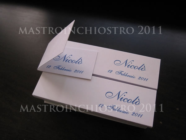 Non dimenticare che, al battesimo, nei sacchetti per i confetti vanno inseriti i bigliettini di ringraziamento per gli invitati, come ha fatto Nicolò.